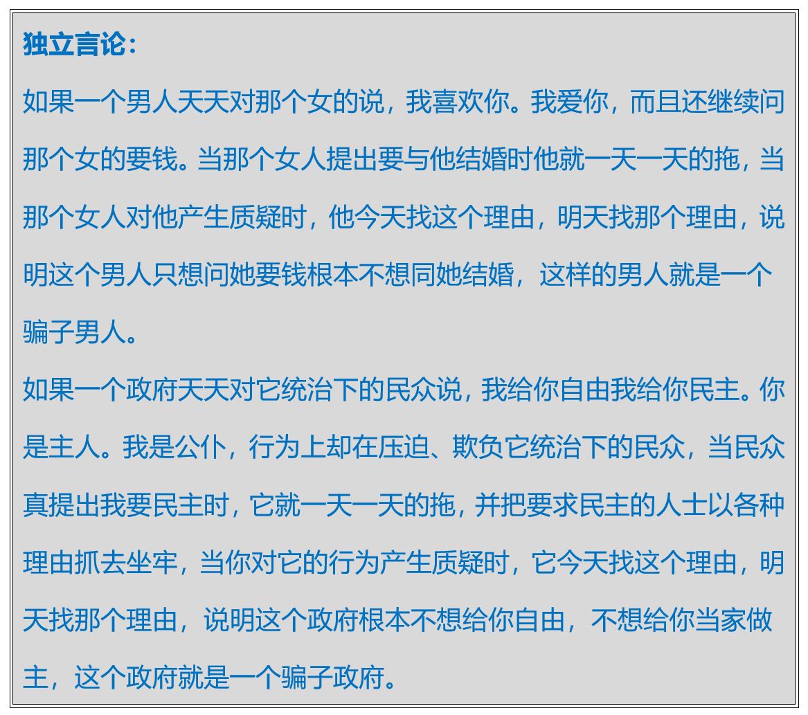 当一个组织不允许你选择和罢免时,它一定会把谎言编织成真理,