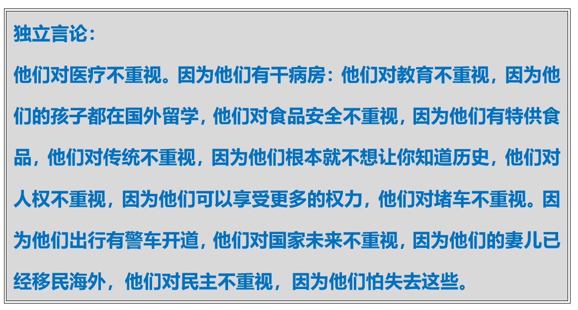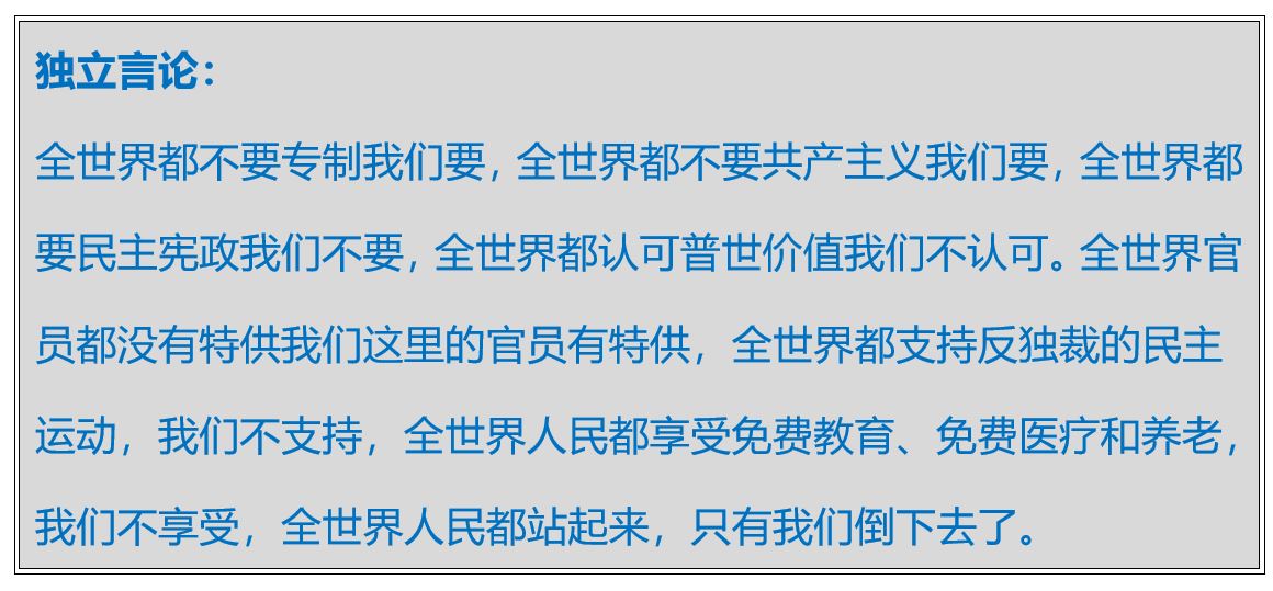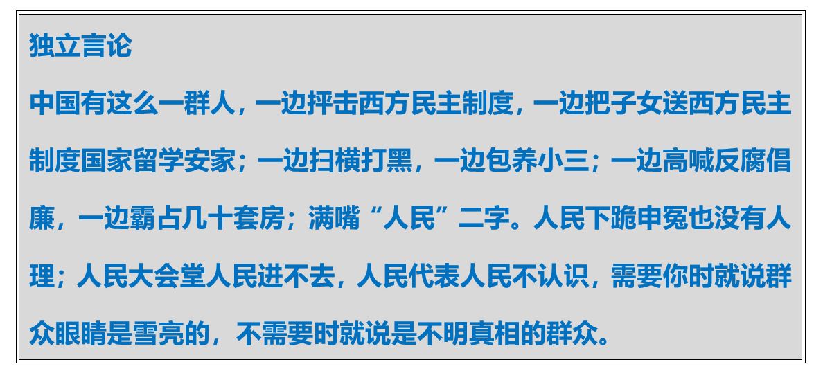 这个国家最让我心悸的,不是每每任意妄为的作恶,而是占主流力量的普通人纷纷告诉你,这个国家就是这样,你也改变不了它,习惯了就行,他们很可能是你的朋友,亲人,爱人,只要自己不被伤害,他们可以容忍任何人被伤害,真实情况就是这样,这就是某些人的奴性,自贱奴还要他人同受。