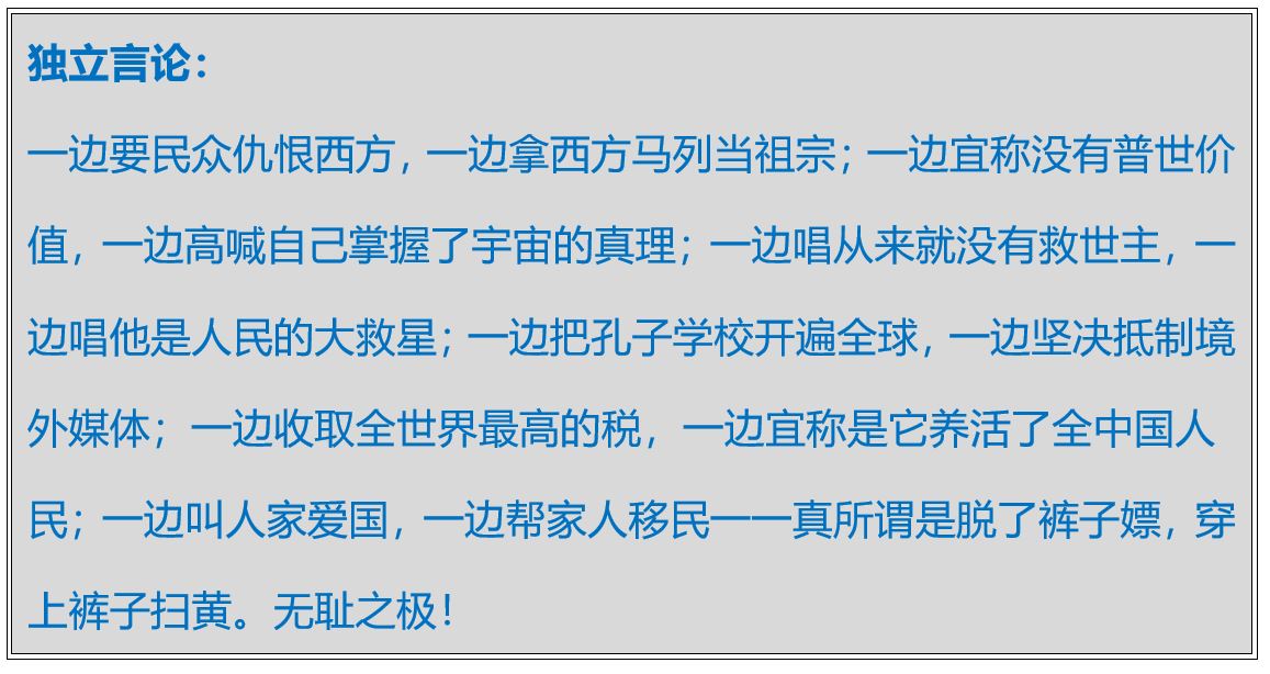 不是这国人素质低,是绝大多数素质低的人霸占着这国,并强迫和教育其国人比它们更低,而绝不允许高过他们,高过他们要么被整,要么被禁,他们不希望国人能独立思考,只希望他们刚好夠聪明去开动机器。而又刚好笨到去接受现实,没有独立的思考,哪来自由的灵魂。